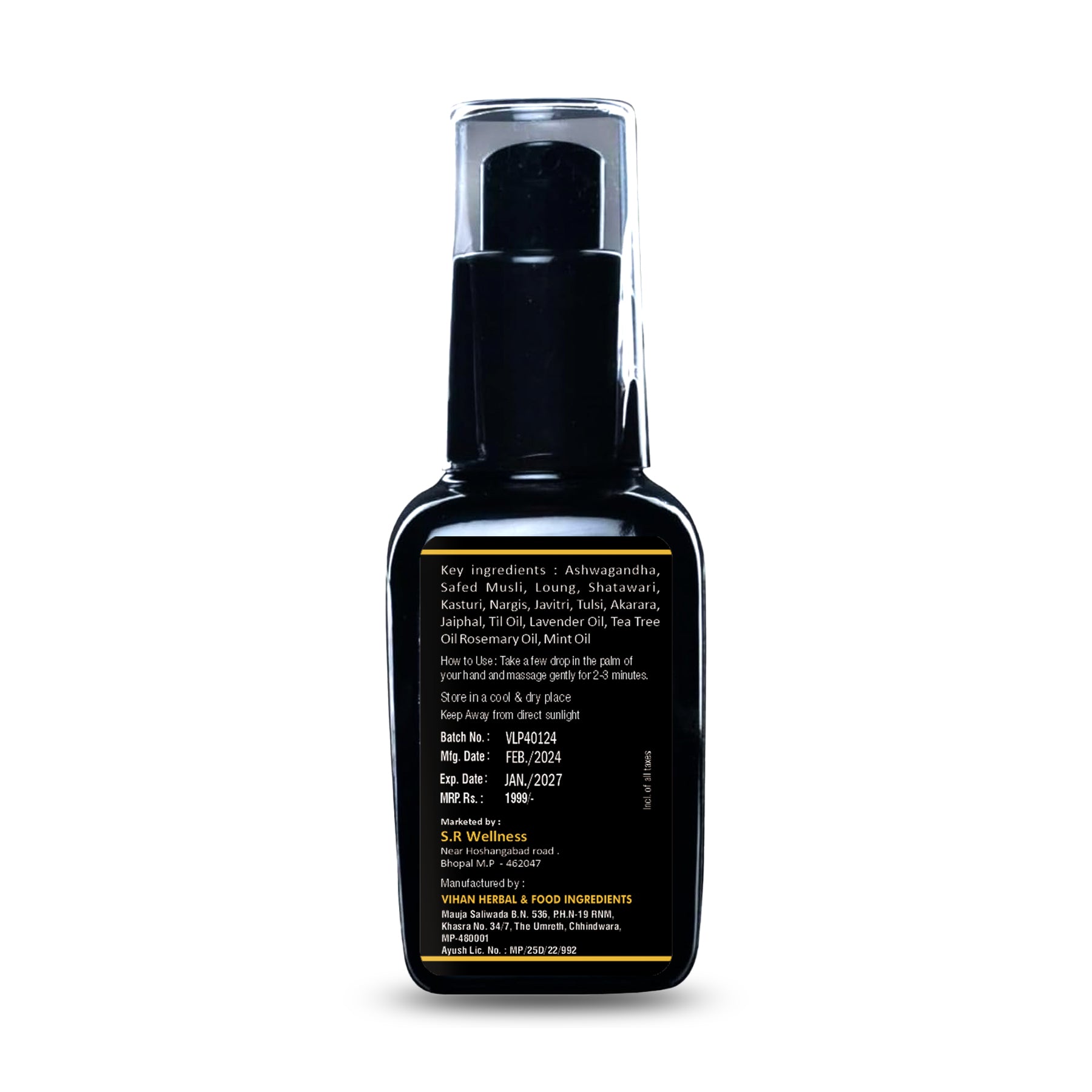 Vedavay Lift-Up Herbal Massage Oil is an Ayurvedic blend of 18+ rare Indian herbs like Ashwagandha, Safed Musli, and Shatavari – designed for men’s performance, stamina, and energy.